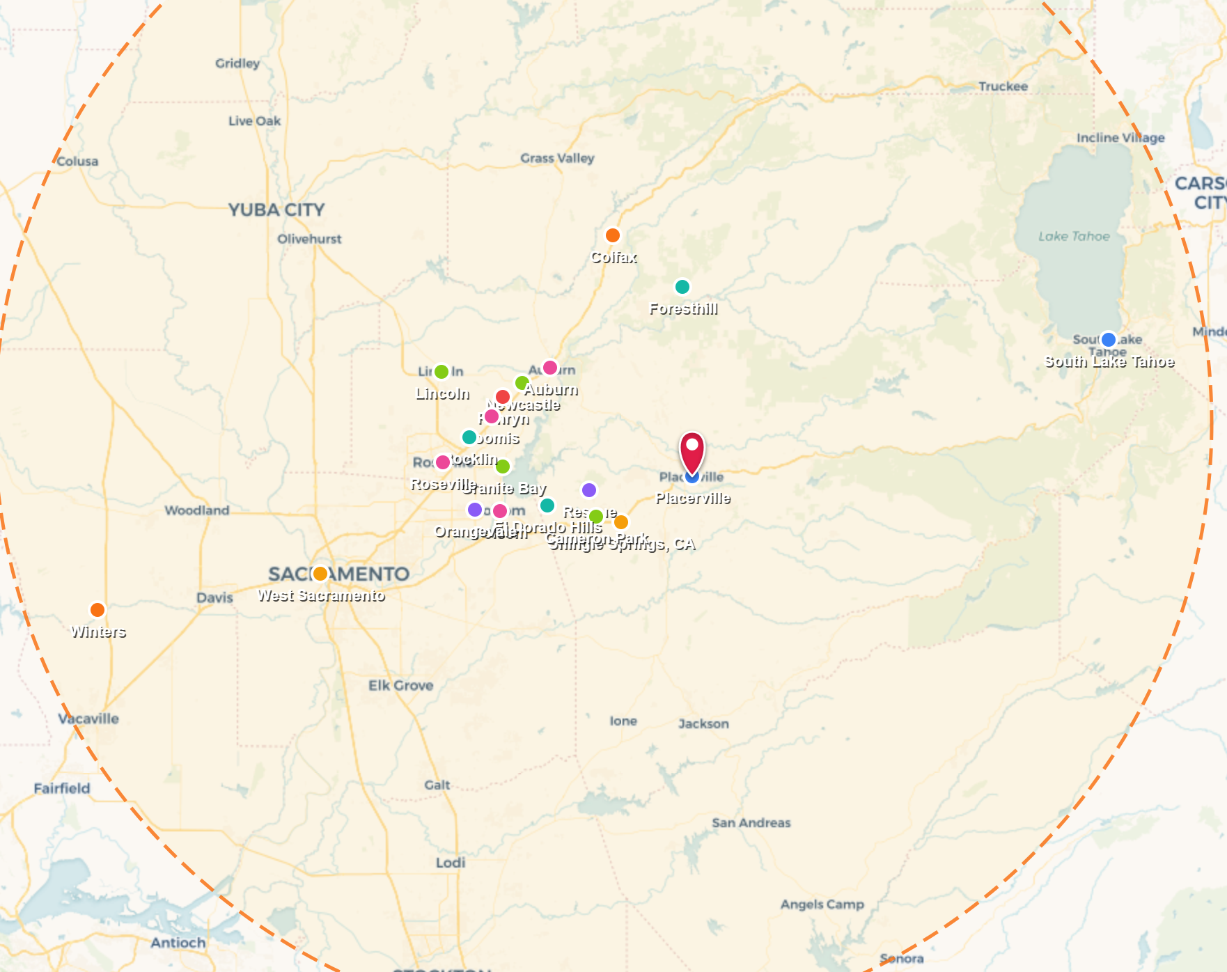 Placerville, CA, and the surrounding Roseville Metro